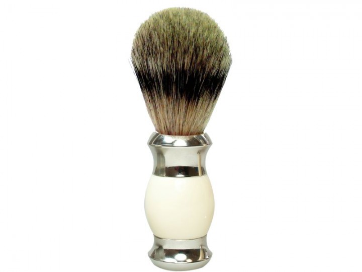 GOLDDACHS Rasierpinsel, weiß/silber, 100% Dachs-Zupfhaar.
