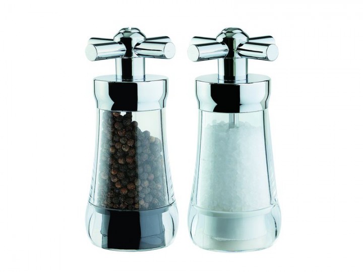 David Mason Design Salz- und Pfeffermühlen-Set, Tap, Acryl, verchromtes Oberteil, Polyacetal-Mahlwerk, gefüllt