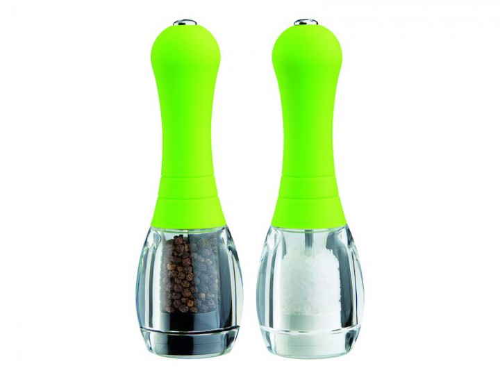 David Mason Design Salz- und Pfeffermühlen-Set, Skittle, Acryl, grünes Oberteil, Polyacetal-Mahlwerk, gefüllt