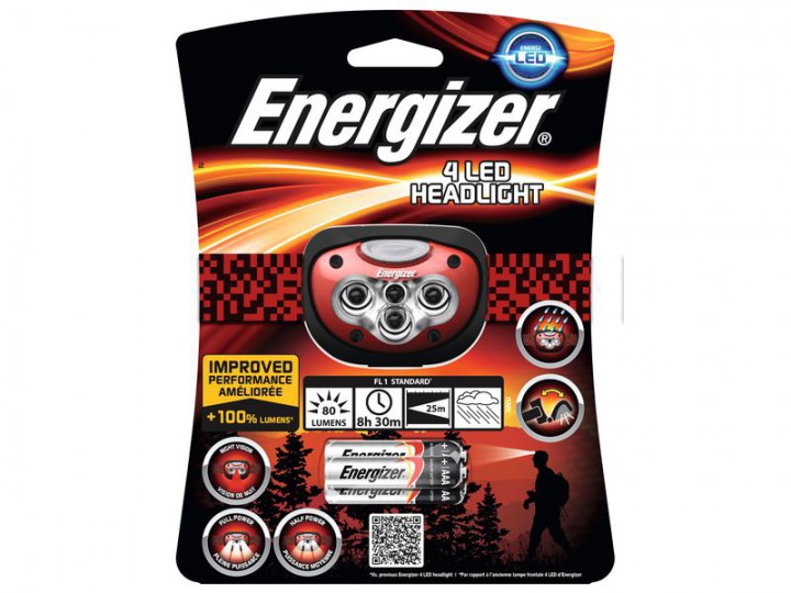Energizer Headlight, Kopflampe mit 4 LEDs, inkl. 3 Batterien AAA