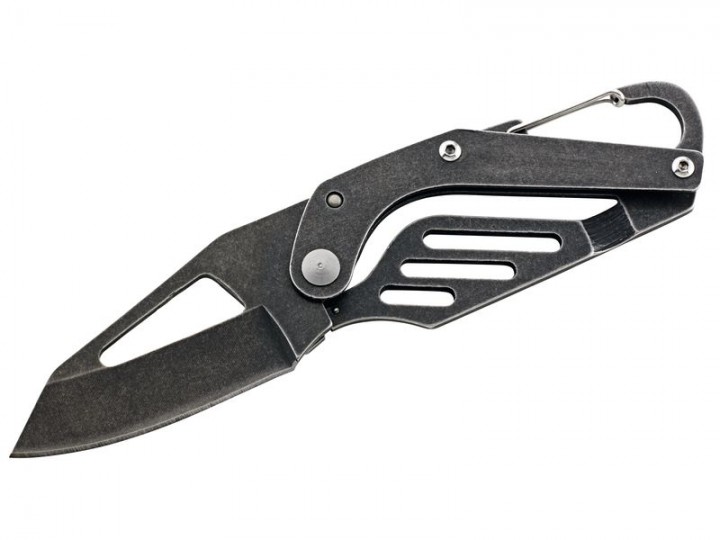 Durch die Skelettbauweise ist dieses Herbertz Einhandmesser im "stonewashed" Finish ein echtes Leichtgewicht. Die Klinge aus rostfreiem AISI 420 Hochleistungsstahl wird über den Durchbruch am Rücken geöffnet und sicher durch ein Frame Lock arretiert. In der Skelett-Griffkonstruktion aus Edelstahl ist ein praktischer Karabinerverschluss eingebaut.