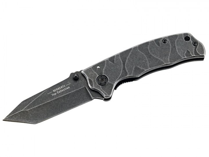HERBERTZ Top Collection Einhandmesser, AISI 420-Stahl, Edelstahl-Griffschalen, Stonewashed-Optik, Nylon-Etui, Box