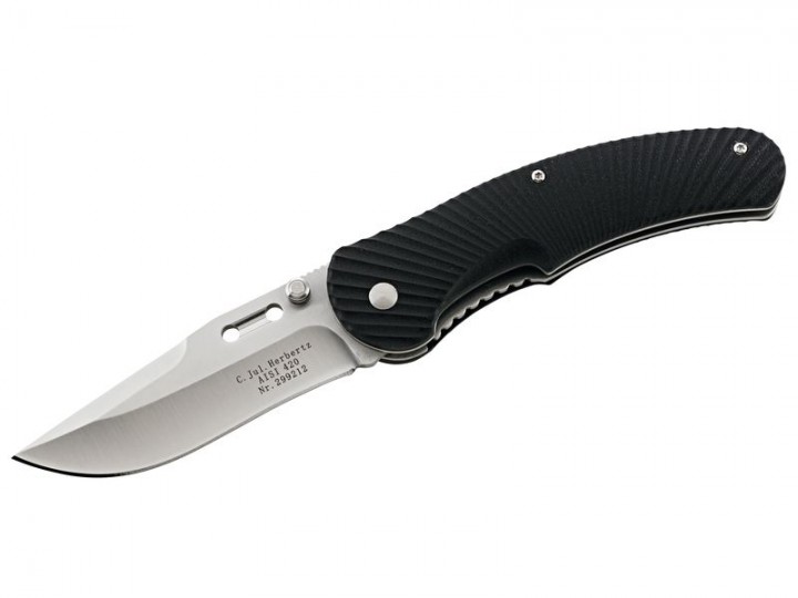 Herbertz Einhandmesser, AISI 420 Stahl, Drop Point Klinge G10 Griffschalen, Liner Lock, Gürtelclip
