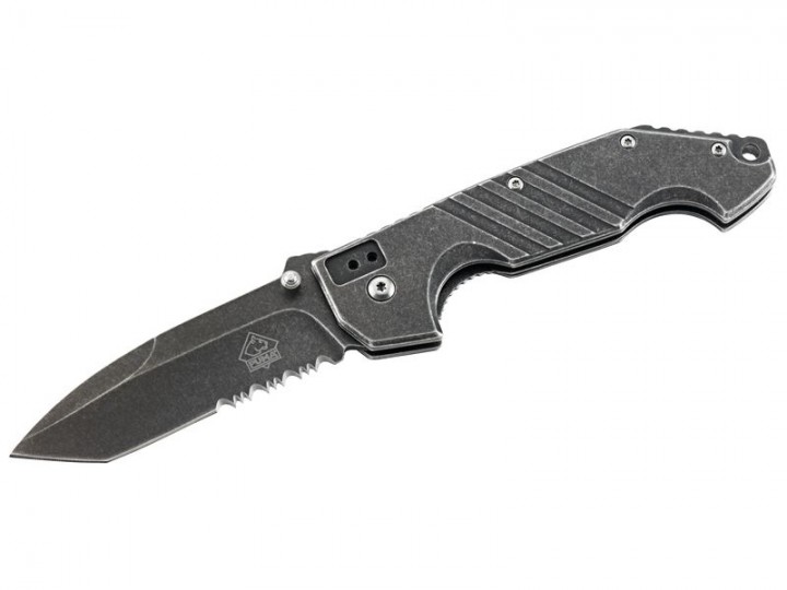 Puma TEC Einhandmesser, rostfrei, 440 Stahl, Stahlgriff Teilsägezahnung