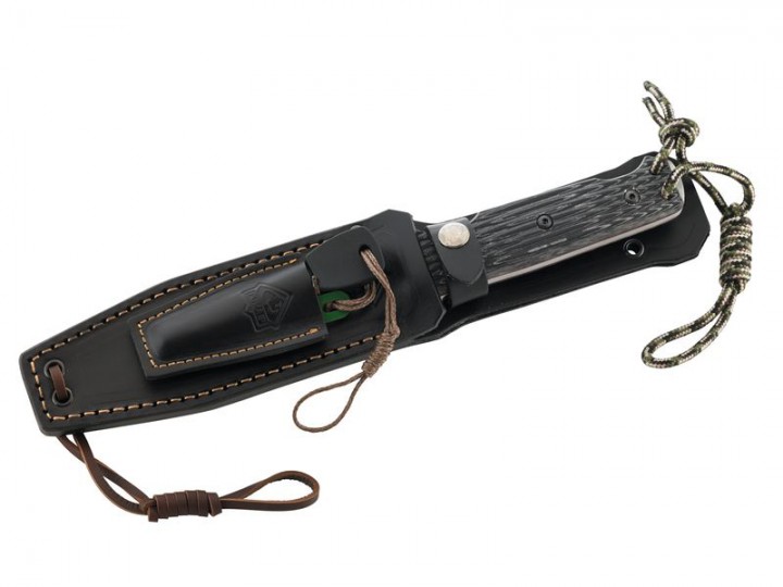 Puma IP Gürtelmesser Chispero, Stahl AN.58, Full Tang, Micarta-Griffschalen, schwarze Lederscheide mit Feuerstarter