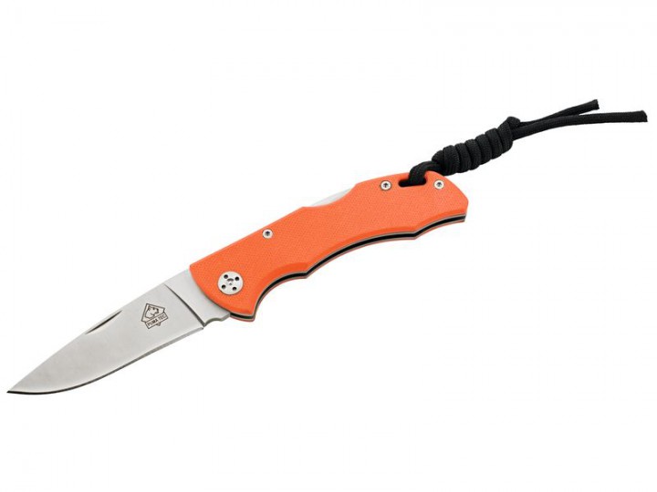 Dieses Puma TEC Taschenmesser ist mit auffälligen, ergonomisch designten Griffschalen aus orangefarbenem G10 ausgestattet. Die universell einsetzbare Drop-Point Klinge aus rostfreiem AISI 420 Stahl wird über einen Nagelhau geöffnet und von einem Back Lock sicher arretiert. Die Fangriemenöse ist bei Lieferung bereits mit einer Kordel bestückt.