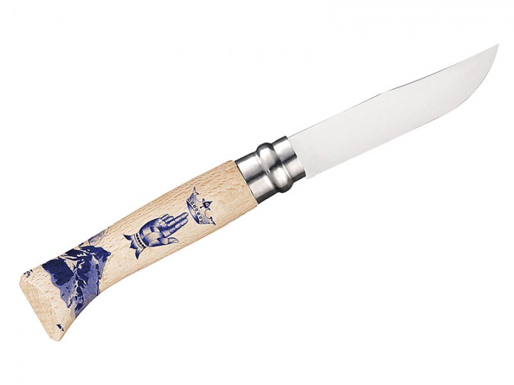 Zum 125jährigen Jubiläum 2015 rief Opinel einen Wettbewerb ins Leben, in dem Messerfreunde dieser renommierten Marke Designvorschläge für den Griff eines Modells einreichen konnten. In dem Gewinnerentwurf von Mathieu Gazaix wurden Motive der Savoyer Alpen widergegeben: Tiere und eine traumhaft schöne Bergwelt der Region. Darüber hinaus das Symbol der gekrönten Hand, das dem Stadtwappen von Saint-Jean-de-Maurienne, dem Gründungsort von Opinel, entnommen wurde sowie die Krone, als Referenz an das Herzogtum Savoyen. Dieses Symbol ist seit vielen Jahren das bekannte Markenzeichen eines jeden Opinelmessers. Bei dem in limitierter Auflage produzierten Messer handelt es sich um ein Modell der Größe 8 mit rostfreier Klinge und einem Griff aus Buchenholz. Auf ein weiteres typisches Merkmal wurde natürlich auch bei diesem außergewöhnlichen Modell nicht verzichtet: der Virobloc-Ring sichert die Klinge gegen ungewolltes Öffnen und Schließen.